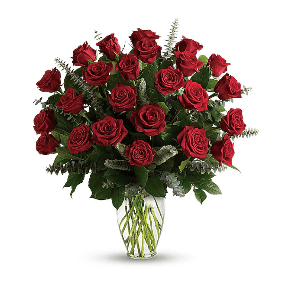 What's more romantic than a dozen red roses? Proclaim your love eternal with this radiant gift of crimson blooms and fresh greens, gathered in a classic keepsake vase.