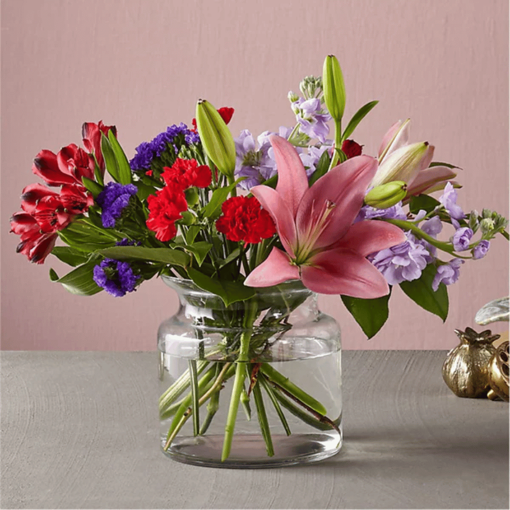Please Note:The bouquet pictured reflects our original design for this product. While we always try to follow the color palette, we may replace stems to deliver the freshest bouquet possible, and we may sometimes need to use a different vase.